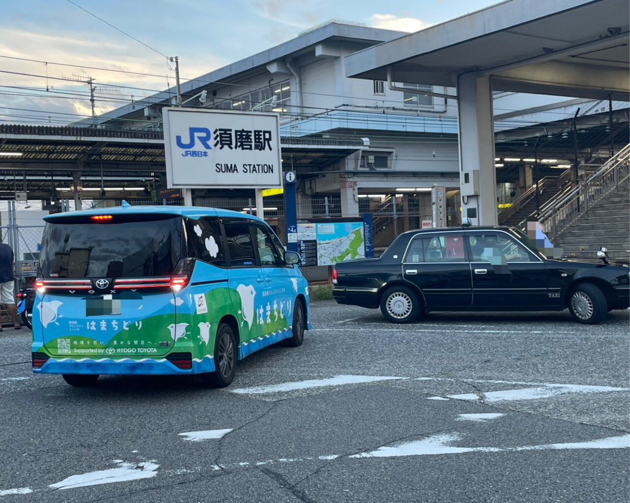 地域の足として親しまれている「はまちどり」に、2025年8月から2台目が加わりました。車体は明るいオレンジ色で、街の風景の中でもひときわ目を引きます。先日、JR須磨駅前で2台並んでいるところを見かけました。