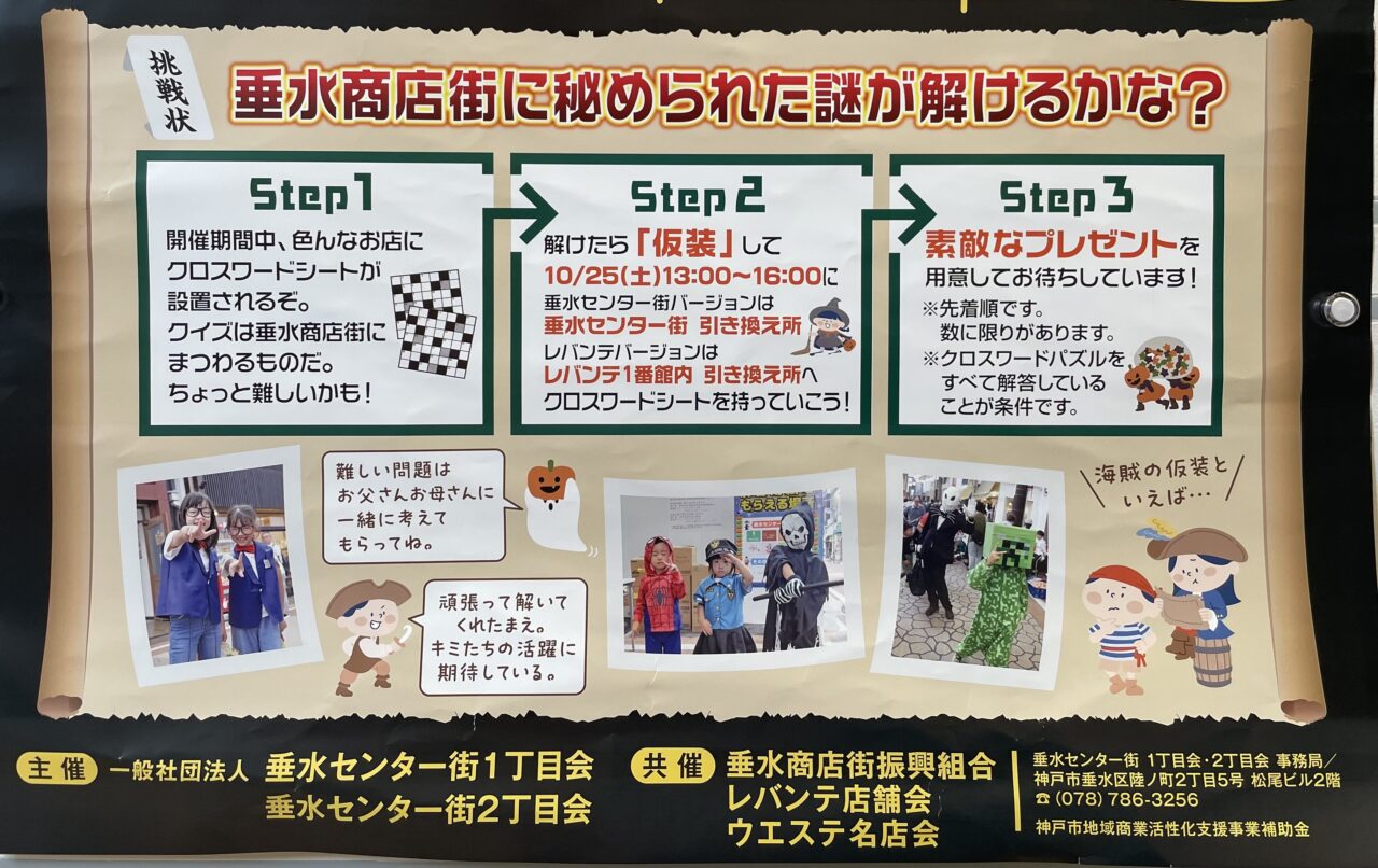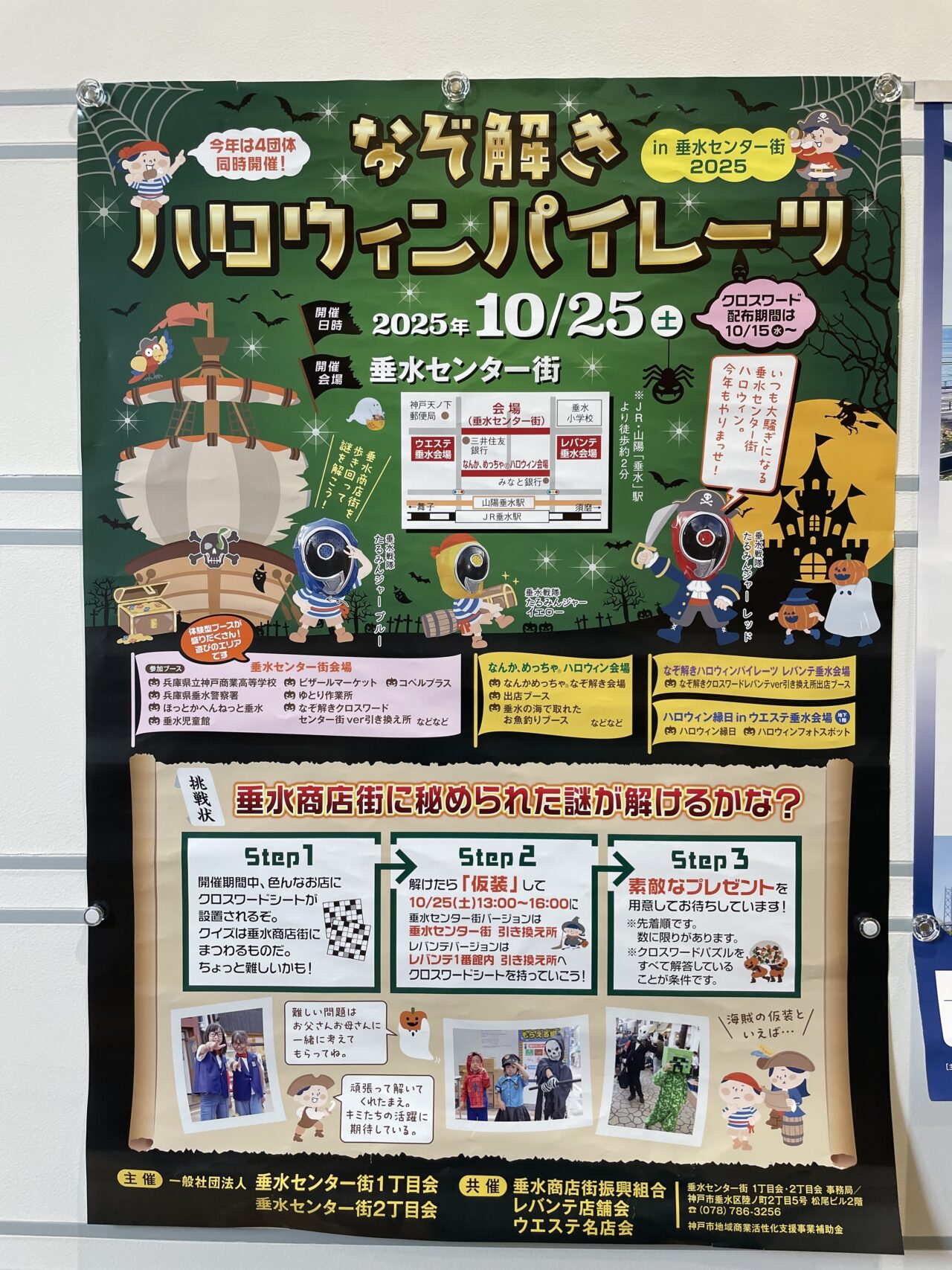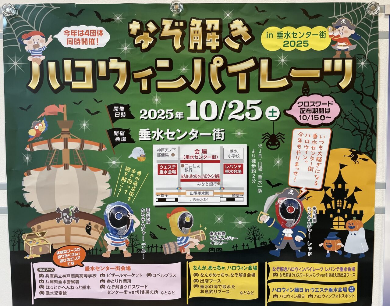 垂水センター街で10月25日(土)、毎年好評のハロウィンイベント「なぞ解き ハロウィンパイレーツ」が開催されます。