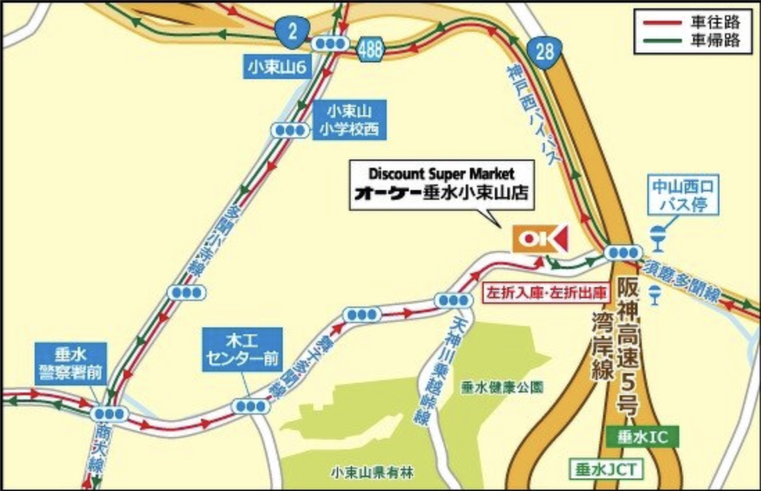 2025年12月3日オープン予定の「オーケー垂水小束山店」について、お車でお出かけの皆さんにご案内です。