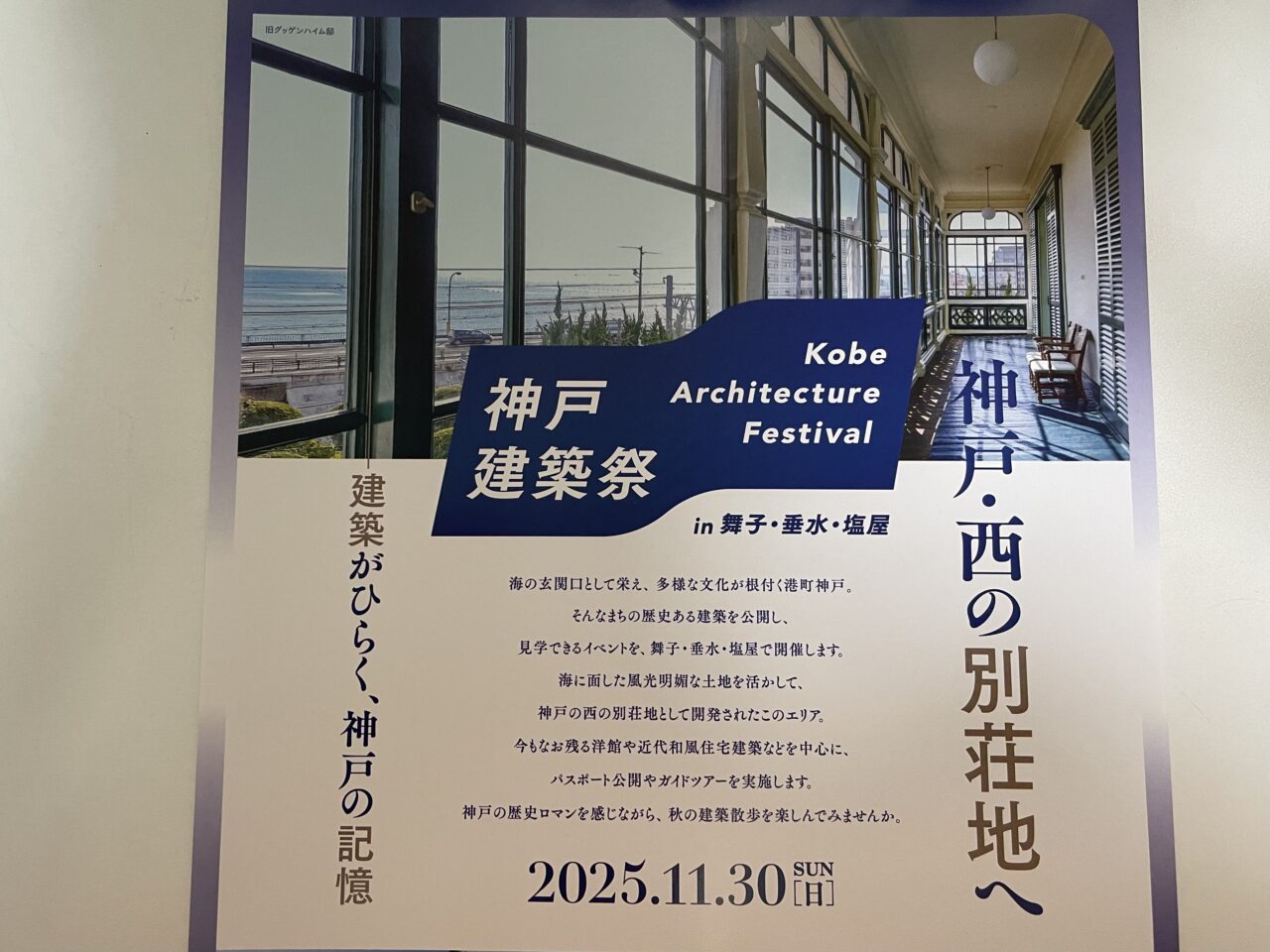 2025年11月30日(日)、建築の魅力を街歩きとともに楽しめる「神戸建築祭 in 舞子・垂水・塩屋」が開催されます。