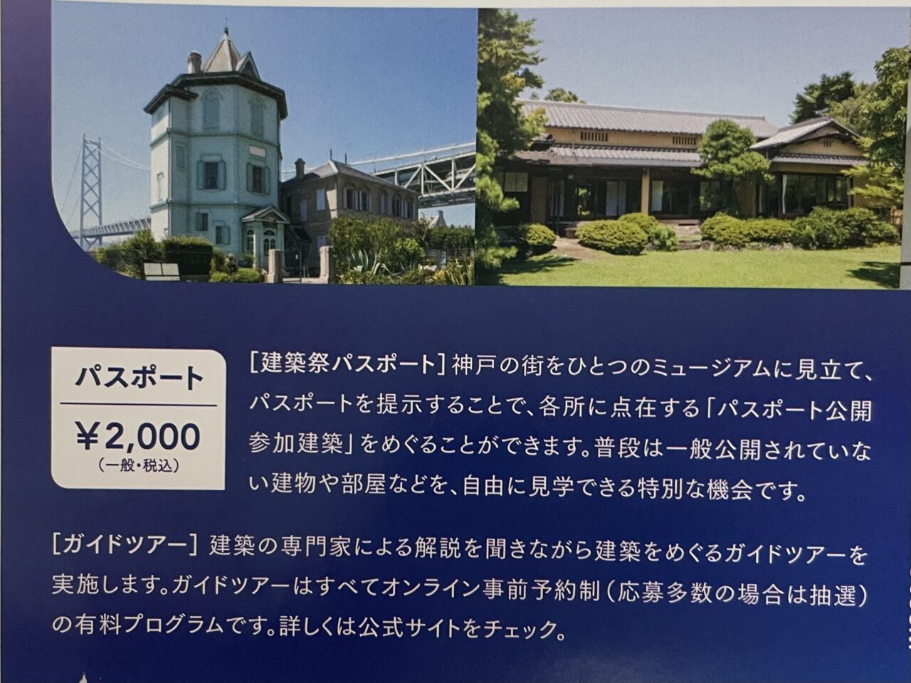 メインとなるパスポート公開では、舞子・垂水・塩屋エリアに点在する建築を自由に見学でき、建築専門家によるオーディオガイド付きで楽しめます。