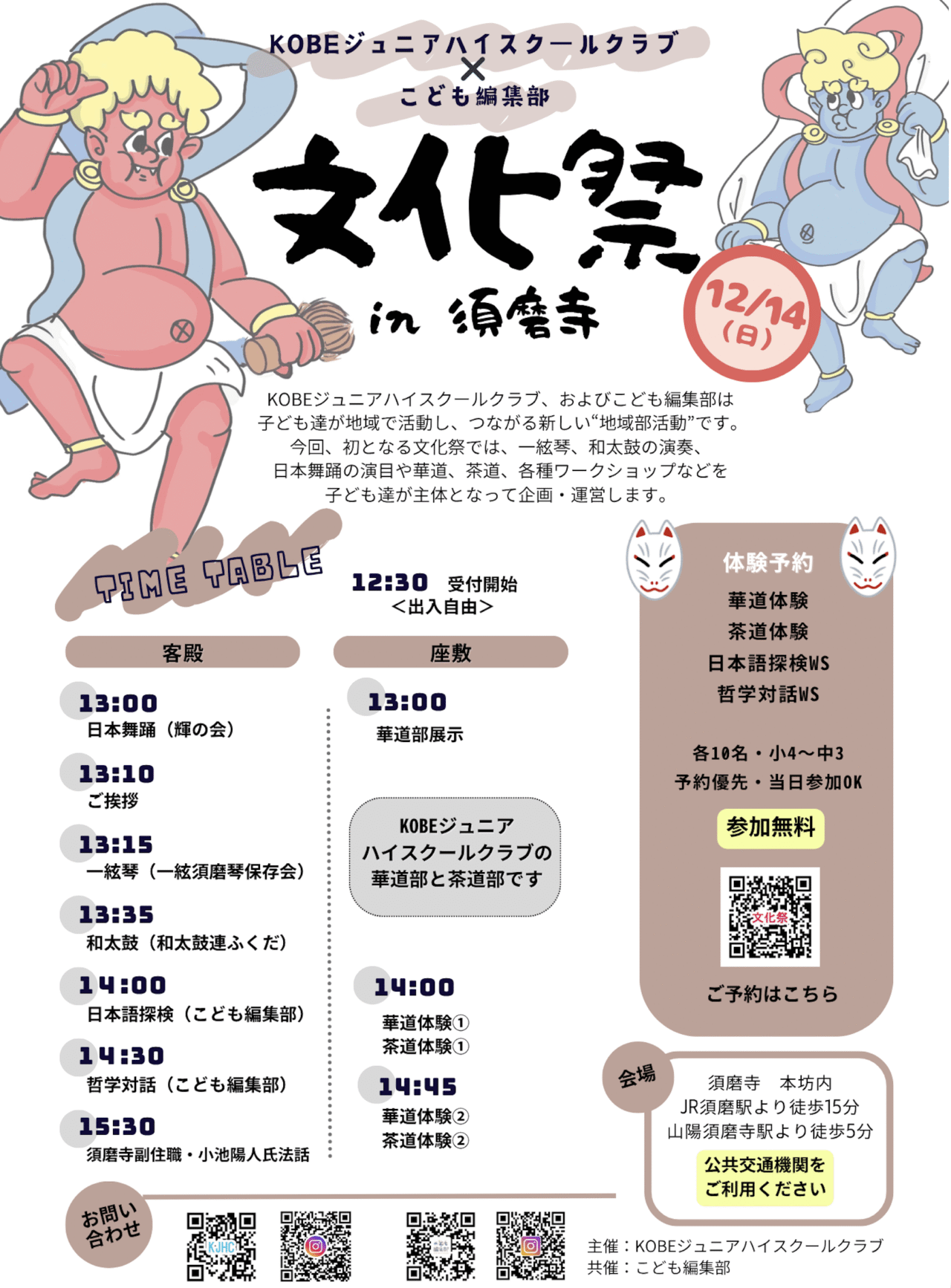 【神戸市須磨区】子どもたちが主役「Japaneseな文化祭 in 須磨寺」初開催 和の魅力を身近に楽しめる一日 12月14日(日)