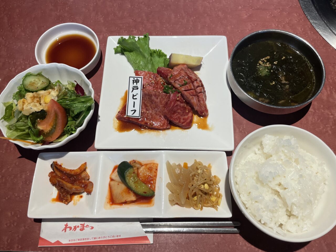特に注目したいのは、平日限定のランチ。手頃な価格で神戸ビーフを味わえると評判で、地元の方にも長く愛されています。キムチやナムル、サラダ、スープ、ライスがセットになって栄養バランスも満足感もたっぷりです。