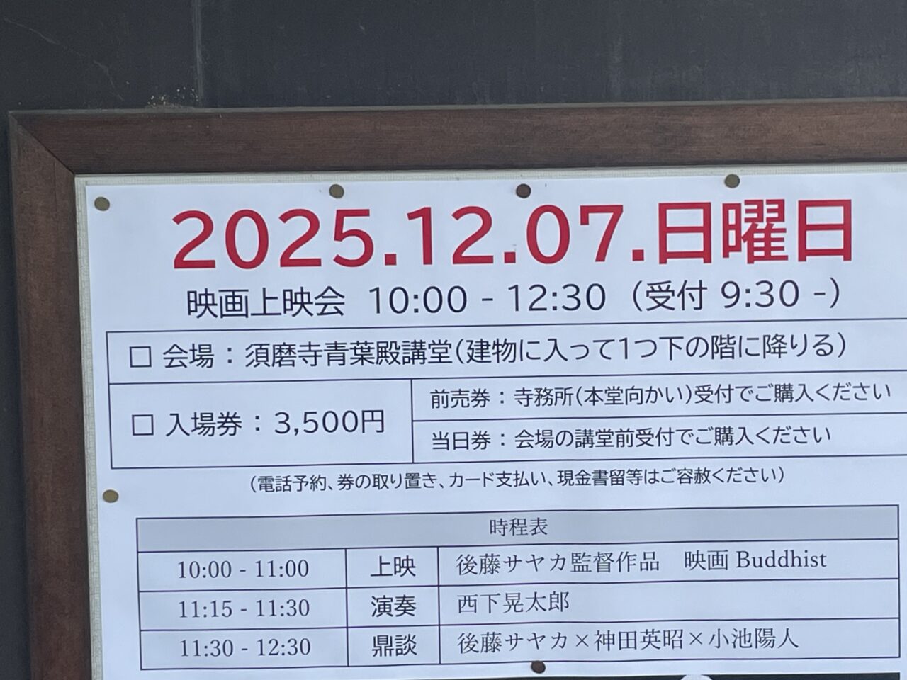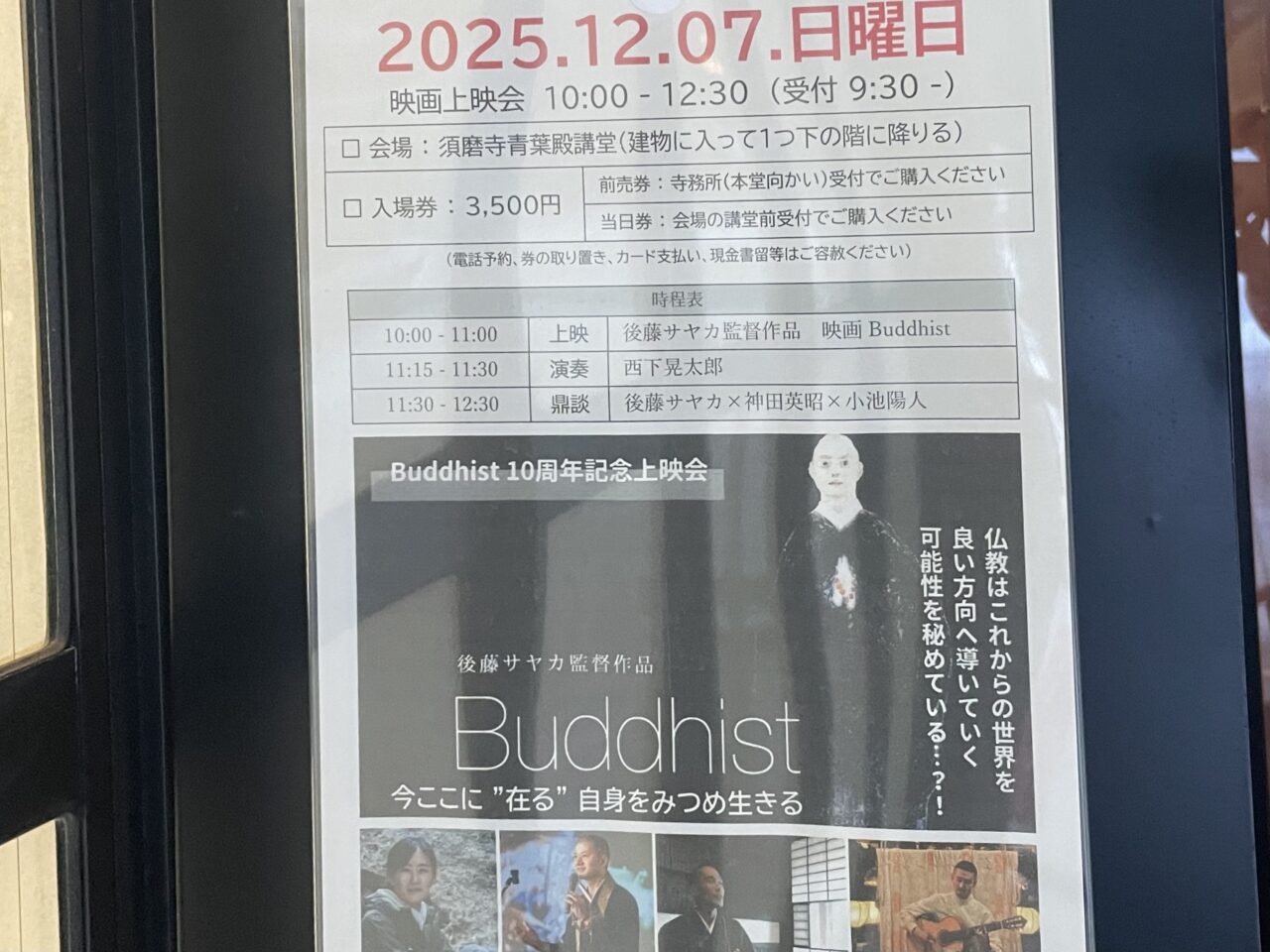 須磨寺で2025年12月7日(日)に映画上映会「Buddhist 今ここに“在る”自身をみつめ生きる」が開催されます。
