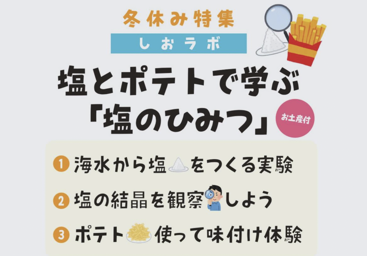 ・名称:冬休み特集 しおラボ 塩とポテトで学ぶ「塩のひみつ」