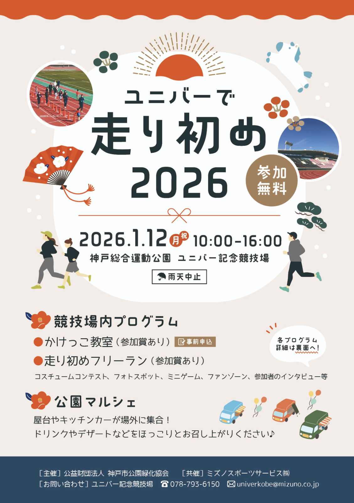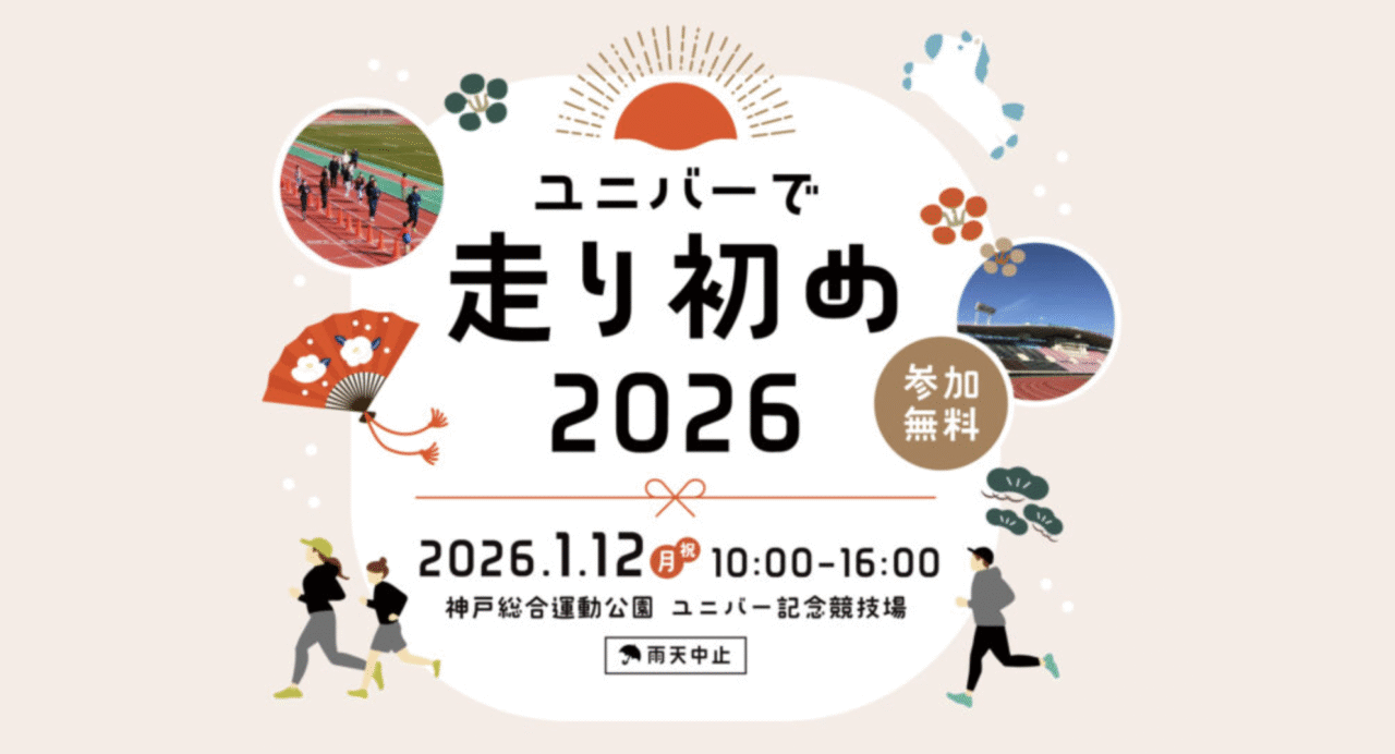 2026年1月12日、神戸総合運動公園のユニバー記念競技場で「ユニバーで走り初め2026」が開催されます。普段は一般開放されていない競技場が、この日限定で利用できます。