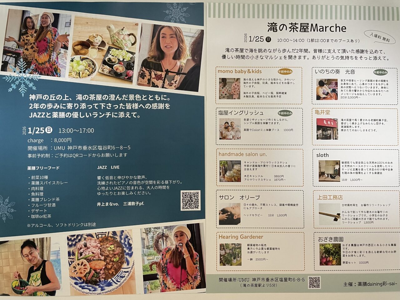 【神戸市垂水区】薬膳dining彩が2周年 感謝を込めたマルシェとJAZZ&薬膳フリーフードを1月25日に開催