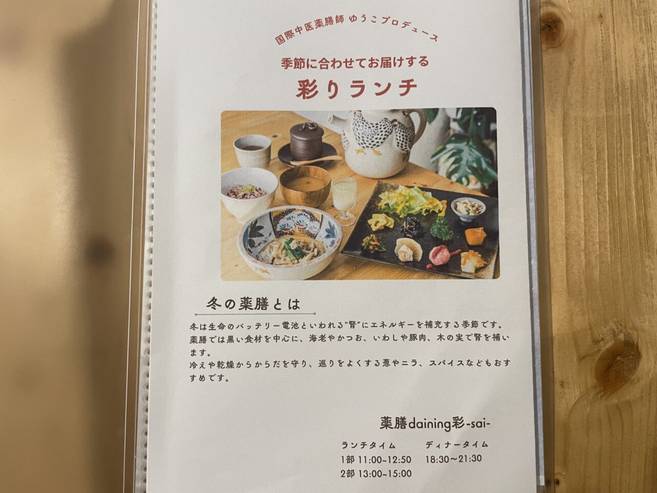「薬膳ダイニング彩」は、季節に寄り添う薬膳料理が楽しめる小さなダイニング。