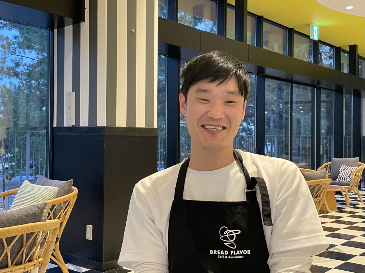 海に面した2階に位置する店内は、大きな窓から自然光が差し込み、開放感のある空間が広がっています。