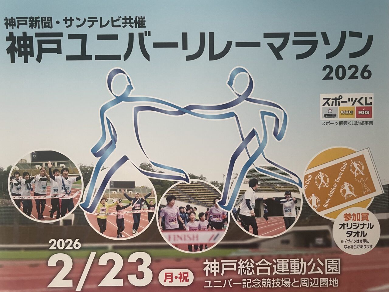 神戸総合運動公園・ユニバー記念競技場で、2026年2月23日(月・祝)に「神戸ユニバーリレーマラソン2026」が開催されます。仲間とタスキをつなぐリレーマラソンは、競技志向のランナーはもちろん、家族や職場の仲間と気軽に参加できます。