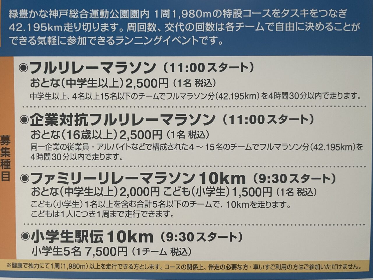 ・種目:ファミリーリレーマラソン10km/小学生駅伝/フルリレーマラソン/企業対抗フルリレーマラソン