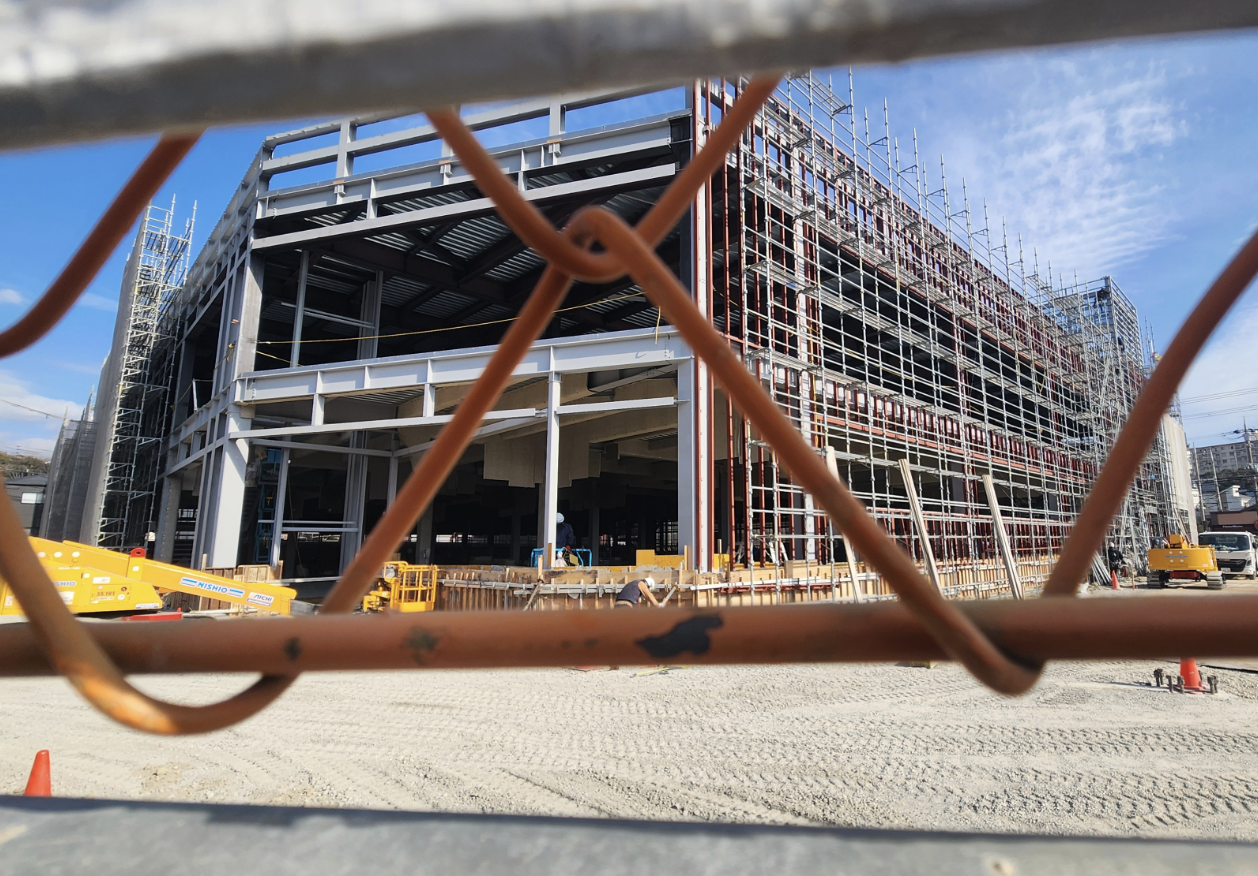 現在、現地では着々と工事が進んでおり、建物の形がはっきりと確認できる状態になっています。