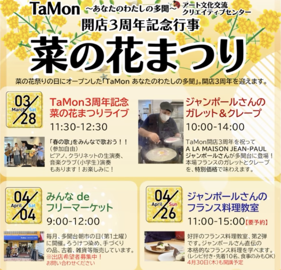 【神戸市垂水区】本格フランス料理が多聞台に!アート文化交流センターTaMonの開館3周年「菜の花まつり」開催