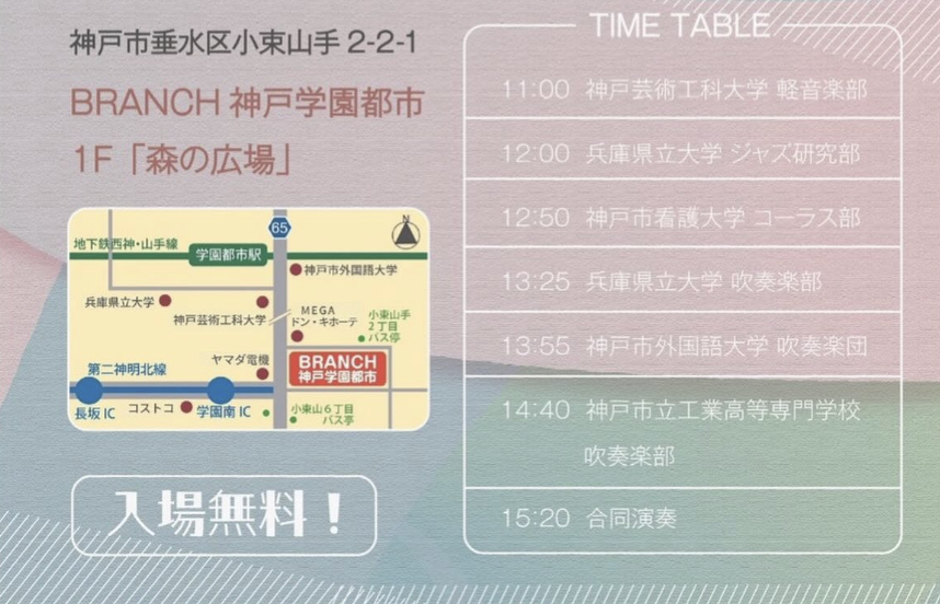 【神戸市垂水区】4月26日、学生たちの音色に包まれる一日 ブランチ神戸学園都市で音楽イベント